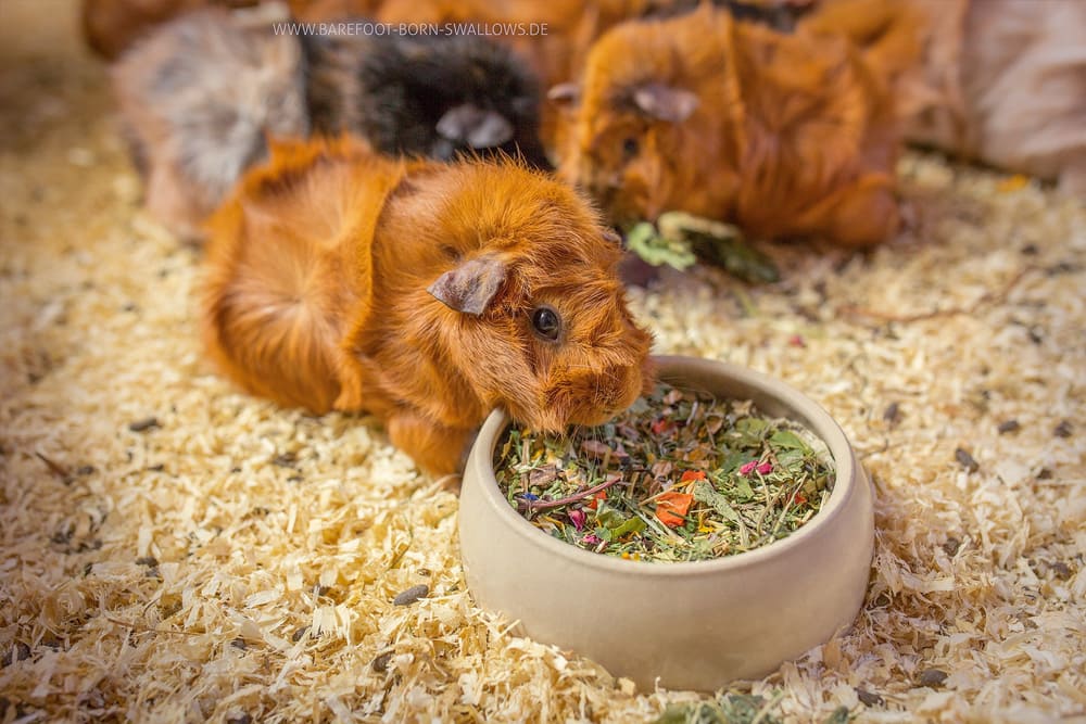 Meerschweinchen trocknen sehr schnell aus und verhungern, wenn sie nicht stetig Futter aufnehmen!
